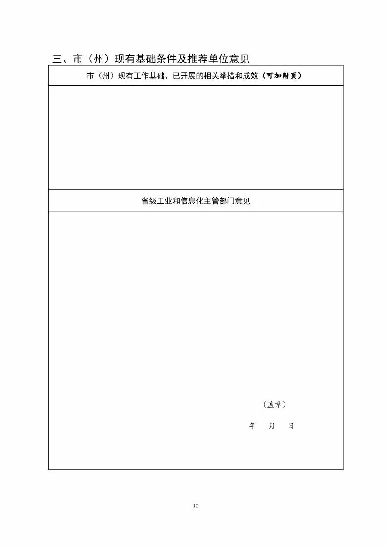 二、各地要兼顾工业稳增长和转型升级两个方面,评选推荐地级行政区名额不超过2个,县级行政区不超过1个;计划单列市本级或下辖县区不能超过1个,由所在省工业和信息化主管部门评选推荐,不占用所在省名额。