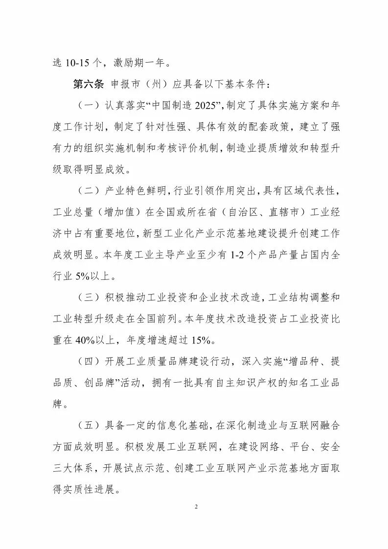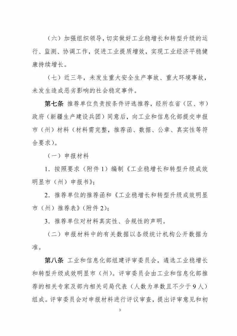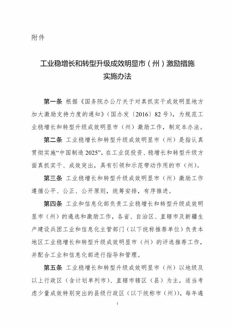 一、请各省(区、市)及新疆生产建设兵团工业和信息化主管部门(以下简称各地)按照《工业稳增长和转型升级成效明显市(州)激励措施实施办法》(详见附件),积极组织评选推荐。